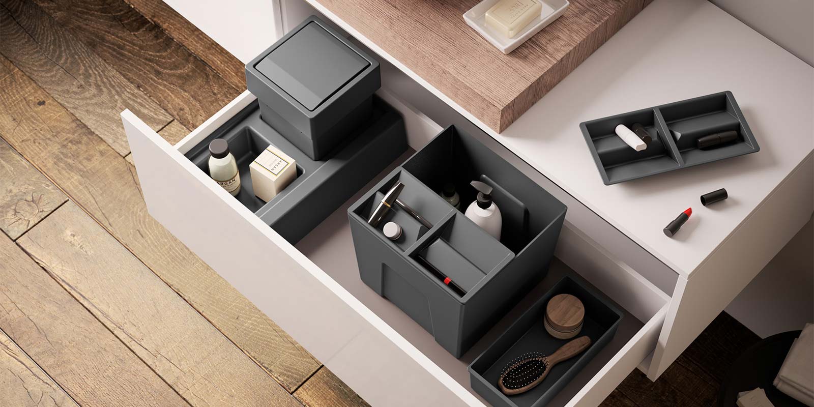 We produce a wide variety of KITCHEN BUILT-IN ACCESSORIES ranging from waste collectors to cutlery trays, from dishracks to space organizers. Our products are specifically designed to suit kitchen cabinets and drawers of customers all over the world.