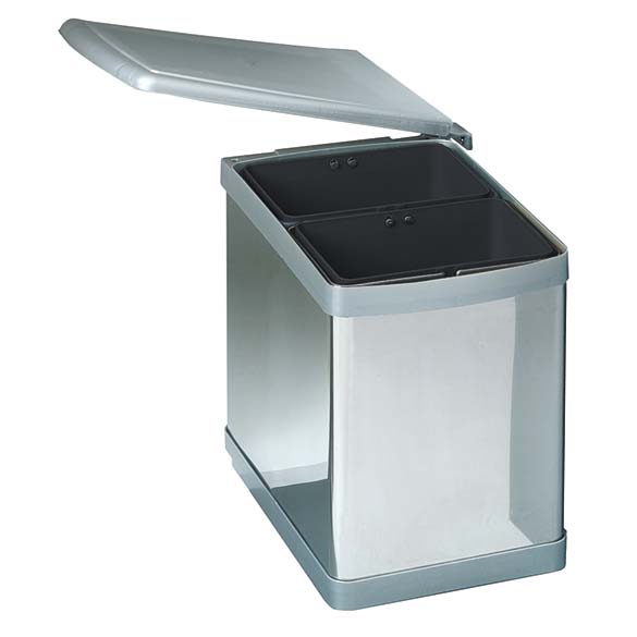 Art. 200inox: height 386mm, one bin with 21lt capacity and equipped with one removable divider.