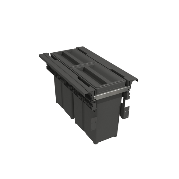 Capacity: one bin 29lt capacity and one bin 11lt capacity.