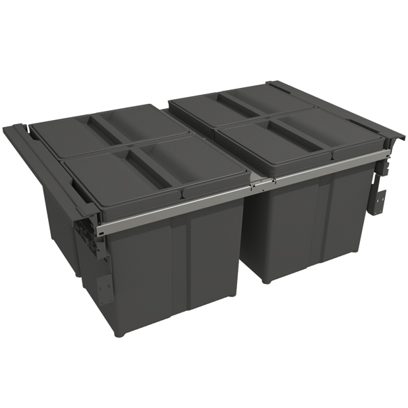 Capacity: two bins 29lt capacity each and two bins 8lt capacity each.