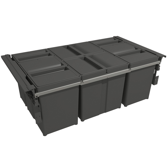 Capacity: three bins 17lt capacity each, one bin 11lt capacity and two small trays.