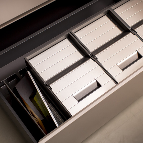 Separate waste collectors for large drawers of the Première Collection are characterized by a strong connotation of esthetic and design.