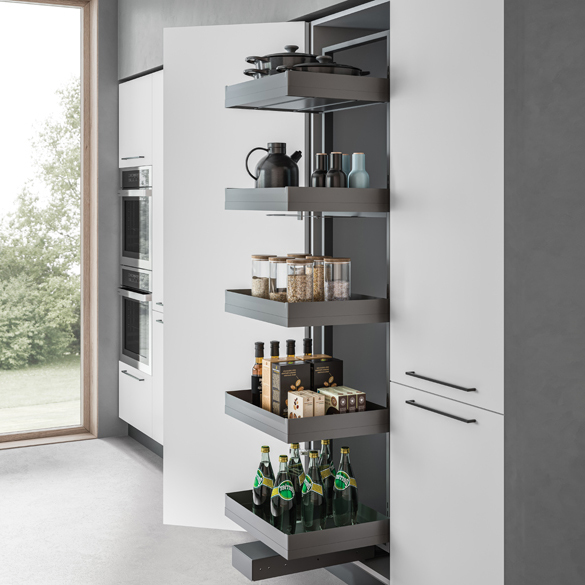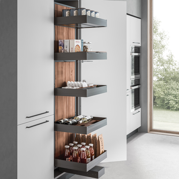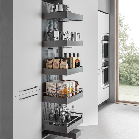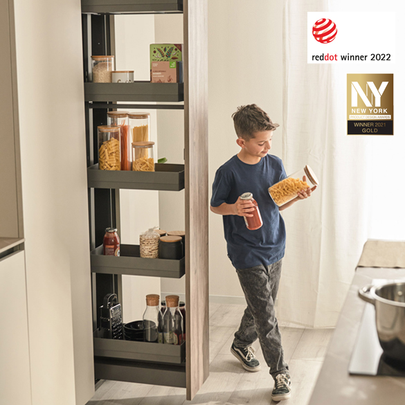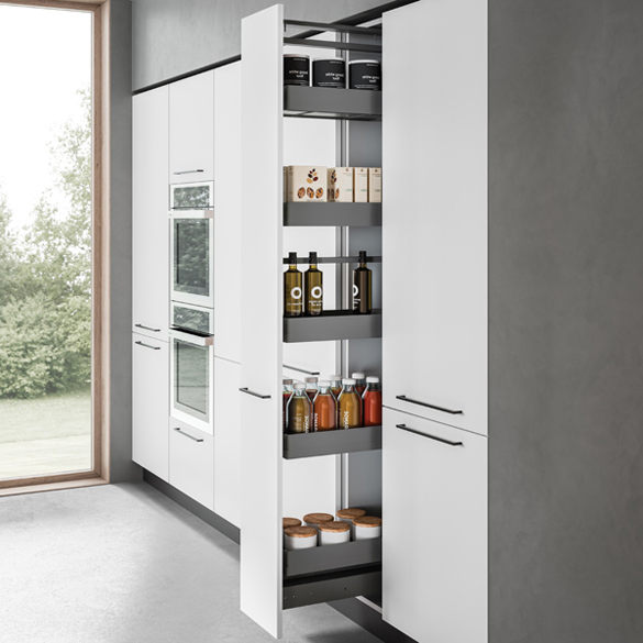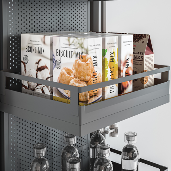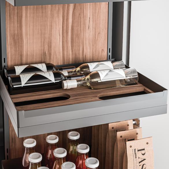 The award-winning Sous-Chef line by Gollinucci is enhanced with Sous-Chef High, a new set of accessories for kitchen rack furniture. The Sous-Chef High line has a variety of models, finishing and optional items. The use of spacious and elegant resin trays is of particular importance, since they represent a trademark of the whole Sous-Chef line.The rack components can be made of either wood or metal. The possibility to add lights inside the rack together with special metal sheet backrests is very fascinating, thus enhancing the elegance and rigour of the lines.
