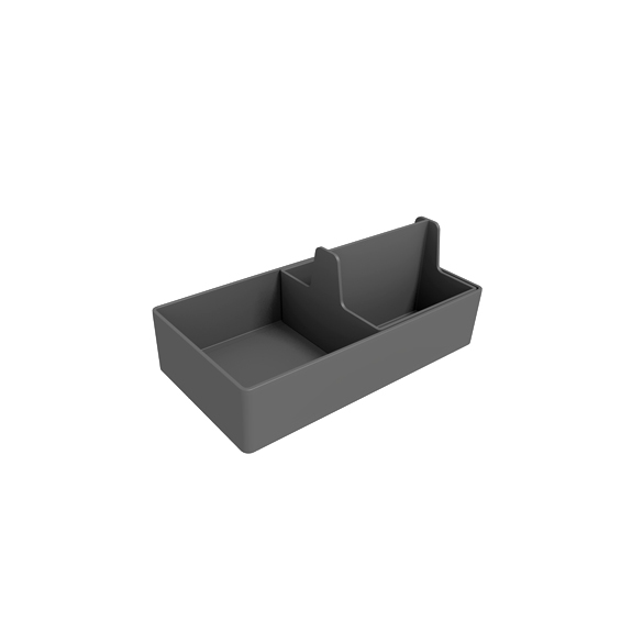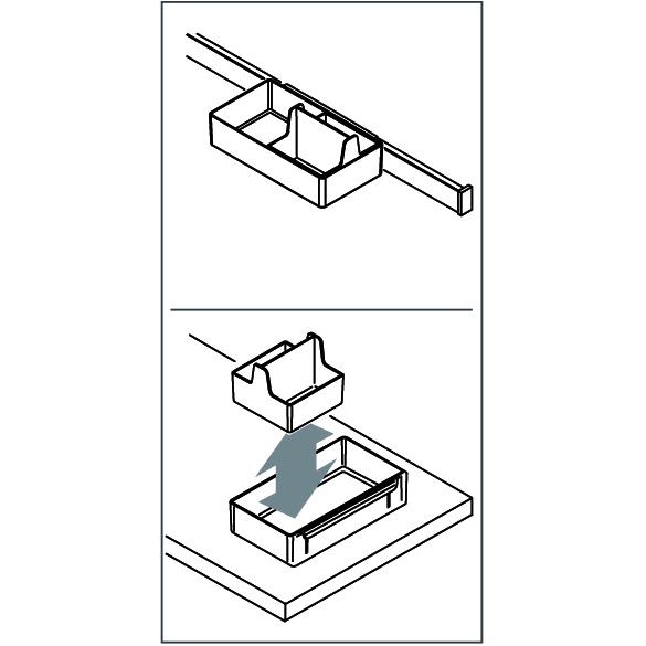 The Sous-Chef collection expands thanks to a new system designed to accessorise at best walls near the working area in the kitchen and to clear the worktop. Sous-Chef Rail System is composed by a bar in painted aluminium equipped with practical multipurpose hooks. The trays included in all Sous-Chef collection products can be hooked on the bar to organise and personalise the kitchen spaces. Some optionals are available: additional trays with an extractable spice trays and a kitchen paper holder, that can be unhooked and used on the top thanks to its vertical support. The smart and minimalist shape of both the main aluminium component and the metal hooks make them suit every type of kitchen. Available in 600/900/1200mm sizes.