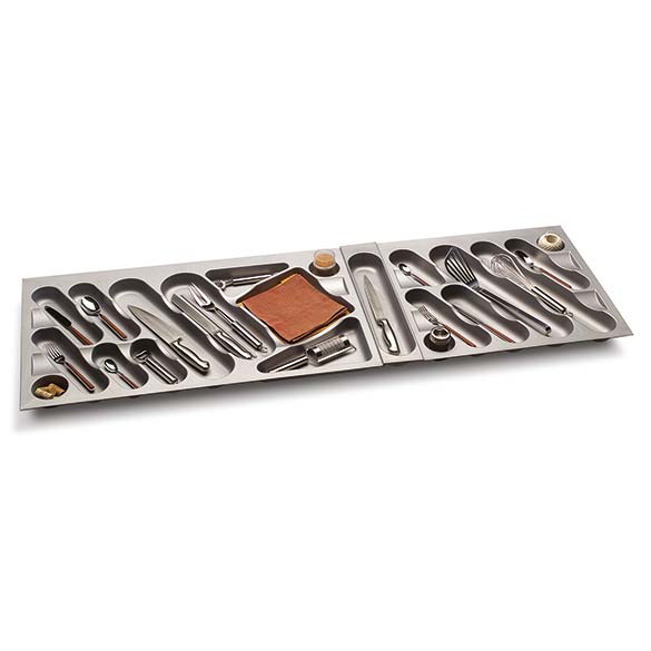 Dessinés par les designers Lucci&Orlandini, les range-couverts Ligne Design se caractérisent par les formes douces et par le positionnement diagonal des compartiments.