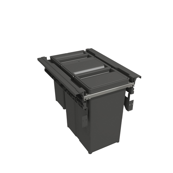 Raccoglitore ad estrazione frontale con secchi sospesi.