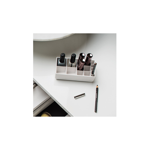 Originale elemento portacosmetici perfetto per organizzare rossetti, matite e smalti.